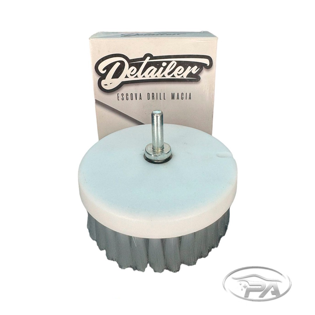 A Escova Drill Detailer Cerdas Macia tem a função de soltar sujidades com auxilio de Politriz rotativa a 2000 rpm ou parafusadeira angular a 2000 rpm. É ideal para limpeza de superfícies em bancos, sofás e tecidos em geral. Possui rosca removível, base em plástico resistente e nylon nas fibras, proporcionando alta durabilidade e praticidade em seu uso.