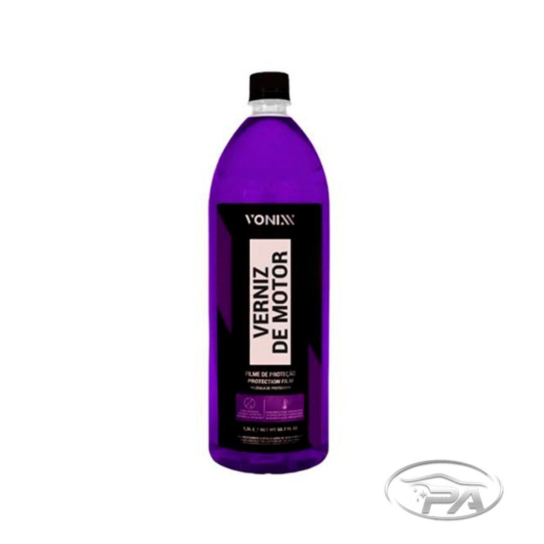 VERNIZ DE MOTOR, protege, dá brilho e renova todas as superfícies existentes no cofre do motor, como partes metálicas, plásticas, superfícies pintadas e mangueiras de borracha. O produto forma um filme levemente lubrificado que penetra em locais difíceis e adere em todas as superfícies citadas. Verniz de motor é resistente a altas temperaturas e tem durabilidade de até seis meses. Também pode ser utilizado em chassi e caixas de rodas, proporcionado os mesmos benefícios de sua aplicação no motor.